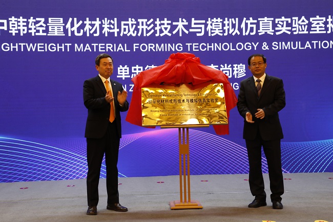 會上,單忠德副總經(jīng)理和李尚穆副院長共同為雙方共建 的“輕量化材料成形技術(shù)與模擬仿真實驗室”揭牌。